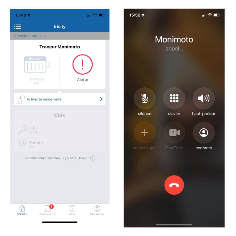 Lorsque le boitier détecte un mouvement, il cherche d’abord à savoir si le badge est à proximité. Si ce n’est pas le cas, l’alarme appelle votre téléphone et vous notifie en plus d’une notification sur l’APP qui vous permettra dès lors de pouvoir suivre le déplacement si tel est le cas. Un moyen rapide et beaucoup plus efficace qu’un sms ou une notification, qui risquent d’être ignorés.